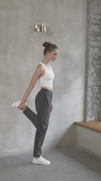綺麗なラインのパンツでオフィスカジュアルにも使えます。仕事帰りのジム通いにも着替えいらずでとっても便利です。
