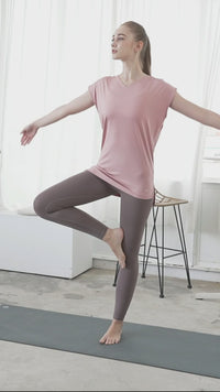 LOOPA バッククロス Vネック チュニック / ヨガウェア トップス 21FW Tシャツ 半袖 吸水速乾